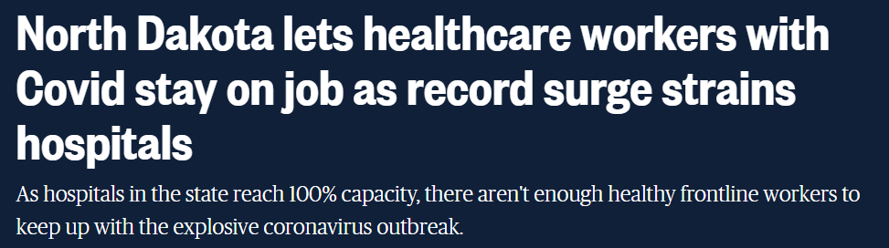 为解决医务工作者短缺问题,北达科他州计划允许新冠病毒检测呈阳性的医务工作者继续工作。这项政策仅适用于无症状感染者,并限制这些医务工作者只能在新冠肺炎患者的病区工作。