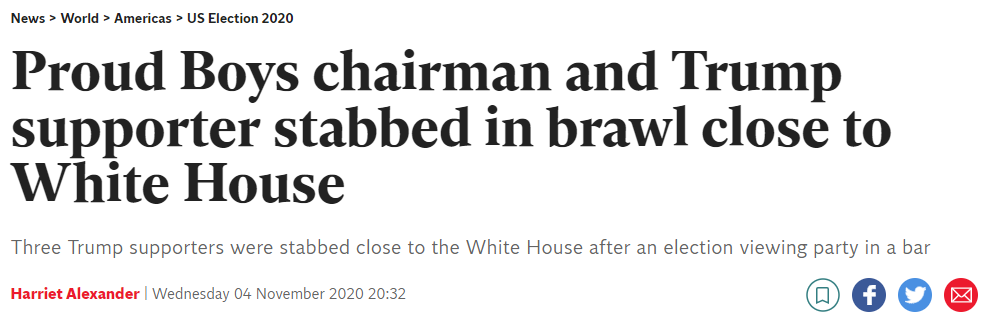 11月3日晚,美国大选逐渐进入计票阶段,首都华盛顿特区高度紧张。白宫北门外持续发生抗议活动,拜登的支持者和特朗普的支持者一度出现肢体冲突。