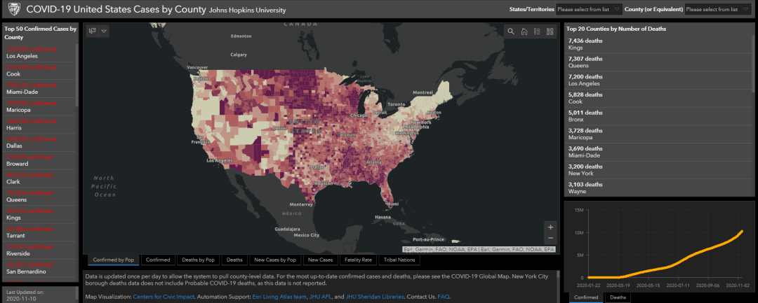 据约翰斯·霍普金斯大学统计数据,美国新冠肺炎累计确诊病例达到1164万例。