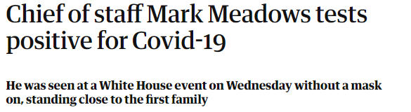 11月6日,白宫幕僚长马克·梅多斯新冠病毒检测呈阳性,则引发了外界对于白宫内部疫情情况的担忧。