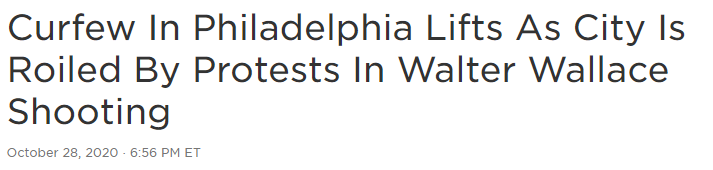10月26日,美国费城一非裔男子遭警察枪击致死。据福克斯新闻,在抗议活动的第二晚,有1000名抢劫者洗劫多家商店。