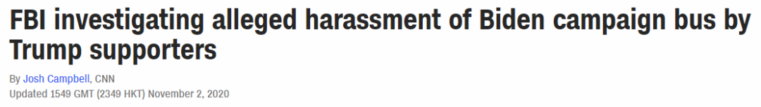11月6日,拜登团队巴士在从圣安东尼奥前往奥斯汀的途中遭遇特朗普粉丝骚扰。