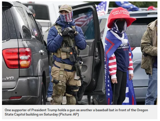 在各路媒体纷纷预测特朗普已经败选之后,这个极易情绪化的群体就纷纷扛着枪涌上街头,用实际行动以表对于特朗普的支持。