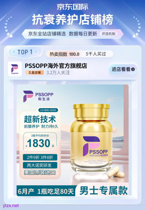 连续三年稳居京东抗衰老养颜NMN类目榜首,成为全网复购TOP1、100%好评TOP1、高端线高性价比TOP1的“三冠王”。远超99.30%的同行,老客户复购率高达88.91% ,全球销量占比79.3%。
