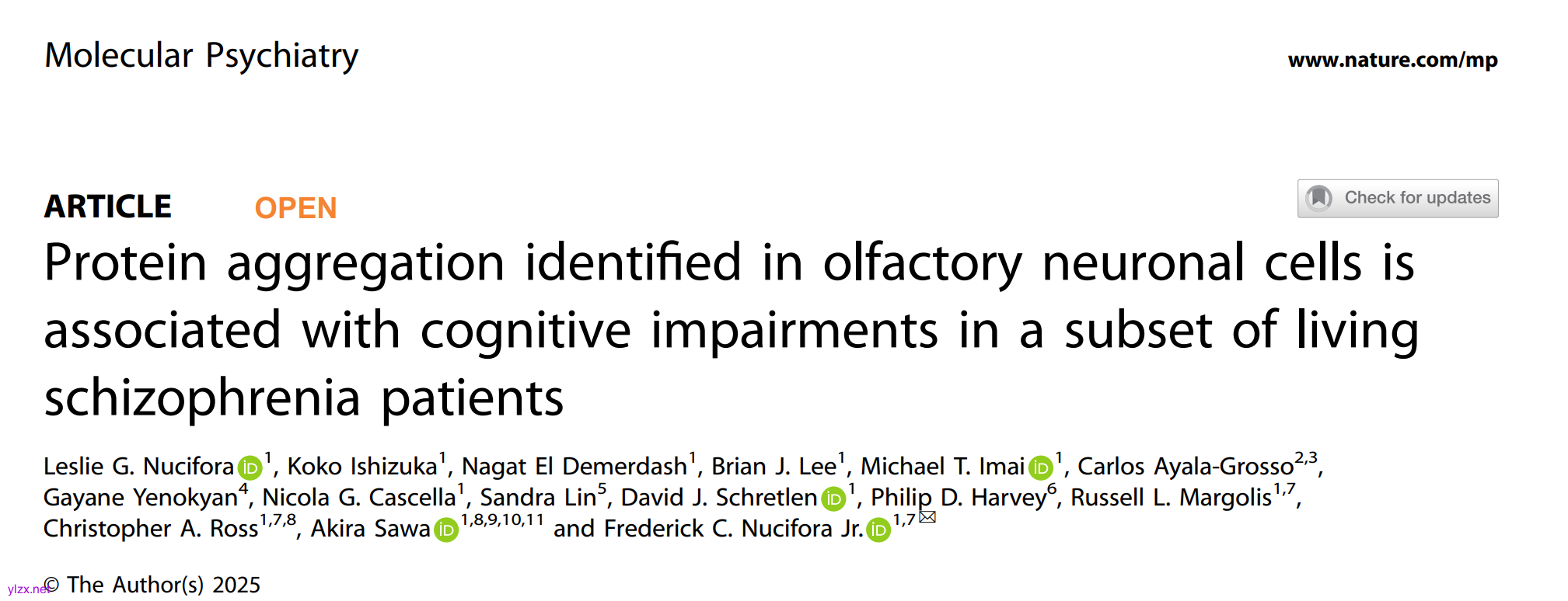 Molecular Psychiatry:精神分裂症新视角:首次在活体患者嗅觉神经元中发现蛋白聚集与认知损伤关联
