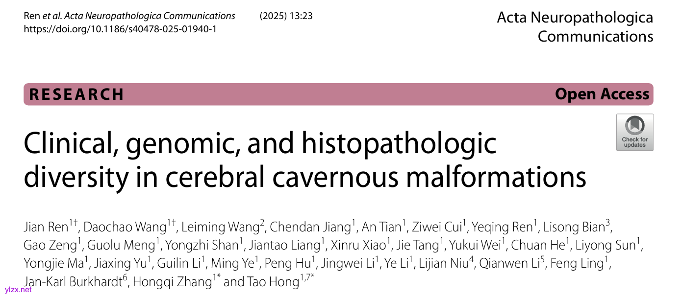 Acta Neuropathol Commun:我国学者揭示脑海绵状血管畸形的临床,基因组和组织病理学多样性