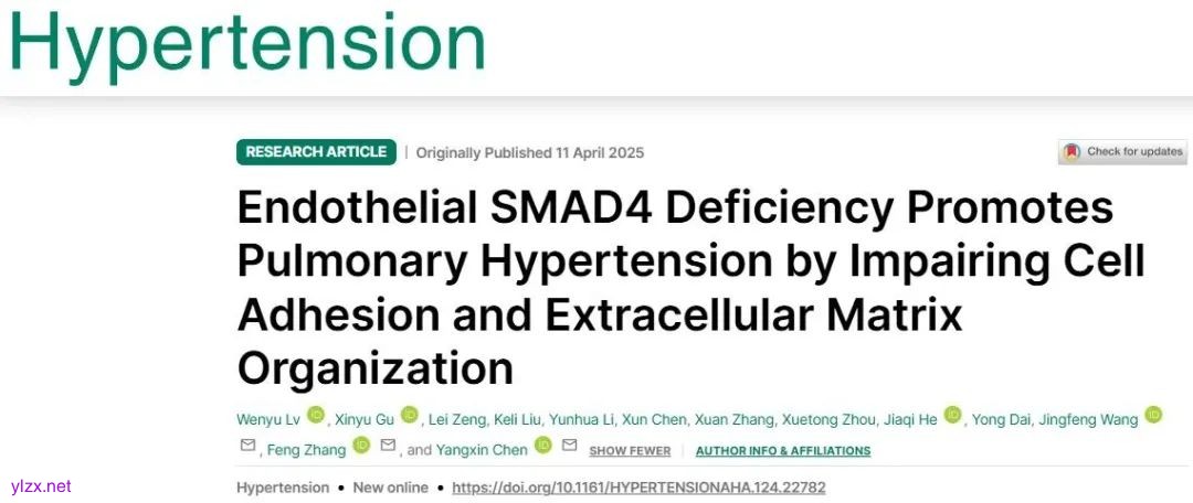 Hypertension 中山大学陈样新教授团队揭示内皮细胞SMAD4缺失促进肺高压发病的作用机制