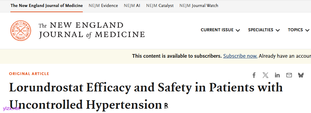 NEJM:Lorundrostat在难治性高血压患者中的疗效与安全性