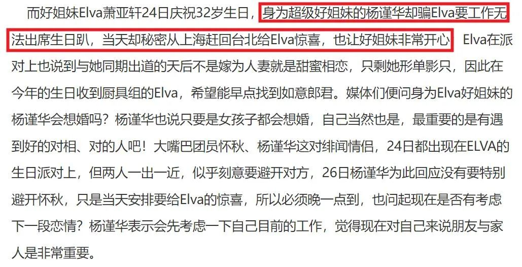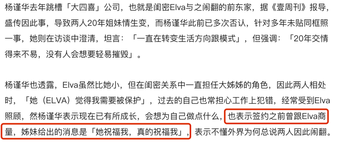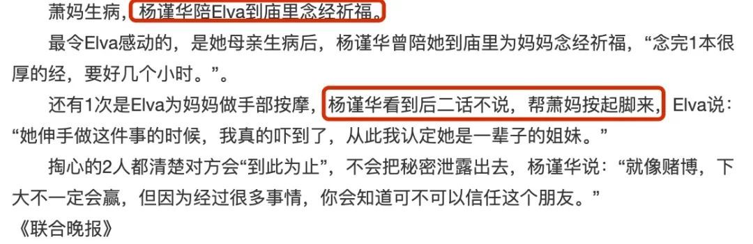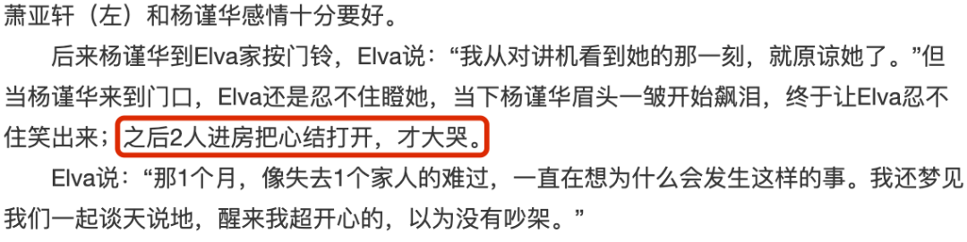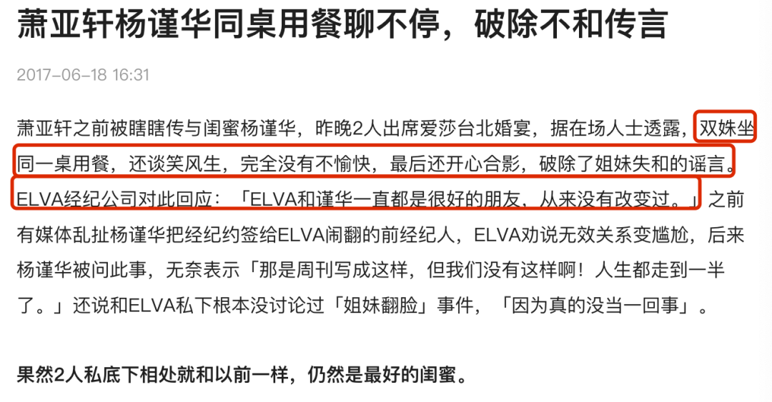 尽管萧亚轩公司回应说:Elva和杨谨华一直是很好的朋友,从未改变过。