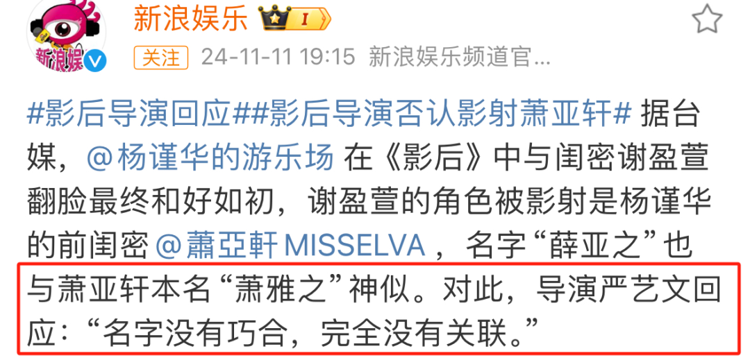 萧亚轩那边除了当年否认两人不和后,再也没有过回应。