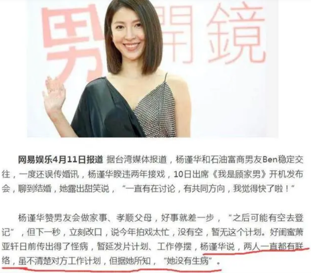 而杨谨华在面对媒体采访问及萧亚轩病情时,直言萧亚轩没有生病⬇️