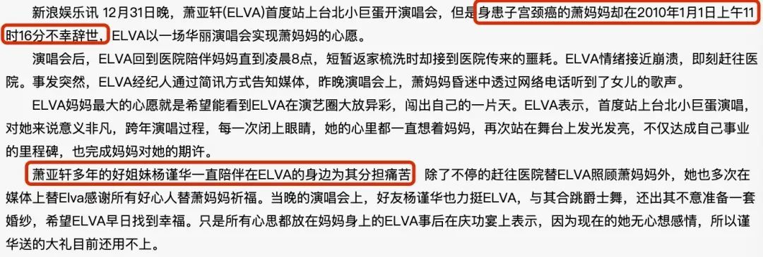 萧亚轩母亲因癌症离世那年,杨谨华一直陪伴在她身边,为她分担痛苦⬇️