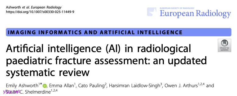 Emily Ashworth,Emma Allan,Cato Pauling,et al.Artificial intelligence (AI) in radiological paediatric fracture assessment: an updated systematic review.DOI:10.1007/s00330-025-11449-9