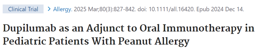 Allergy:Dupilumab联合口服免疫疗法治疗儿童花生过敏的疗效与安全性