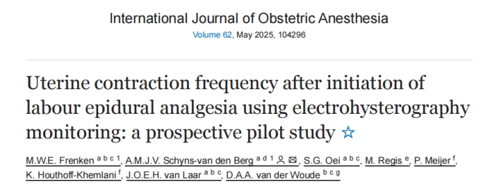 【产麻新谭】使用子宫电位描记法监测分娩镇痛后子宫收缩频率:一项前瞻性试验研究