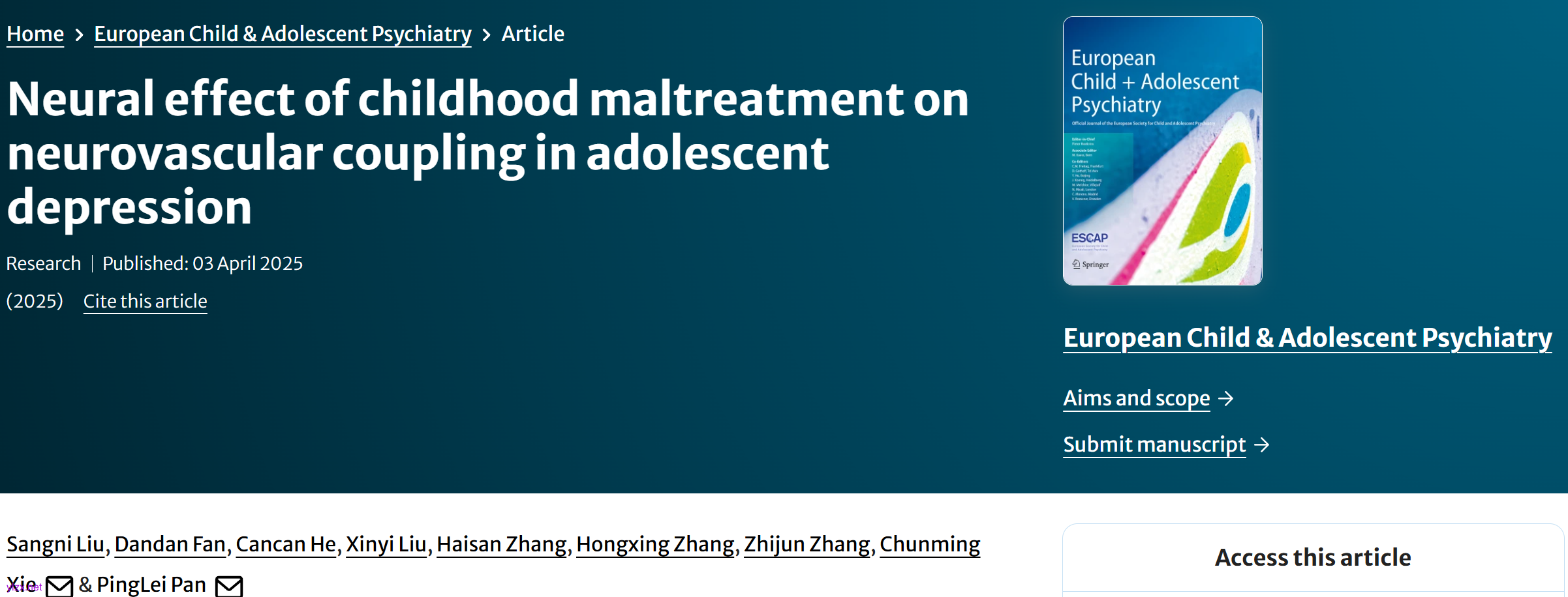 Liu S, Fan D, He C, et al. Neural effect of childhood maltreatment on neurovascular coupling in adolescent depression. European Child & Adolescent Psychiatry. 2025. https://doi.org/10.1007/s00787-025-02708-7