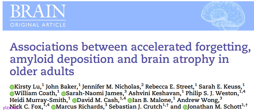 Jonathan M Schott, Associations between accelerated forgetting, amyloid deposition and brain atrophy in older adults, Brain, Volume 148, Issue 4, April 2025, Pages 1302–1315, https://doi.org/10.1093/brain/awae316