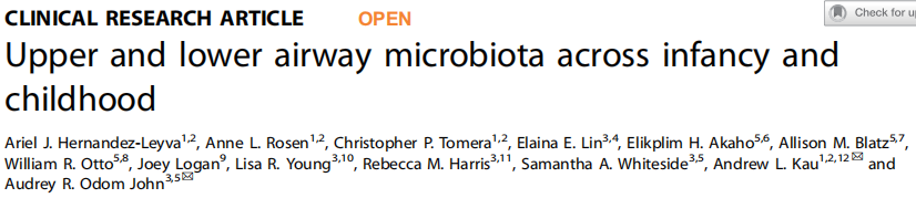 Ariel J. Hernandez-Leyva, Anne L. Rosen, et al, Upper and lower airway microbiota across infancy and childhood, Pediatric Research, 2025, https://doi.org/10.1038/s41390-025-03942-0.