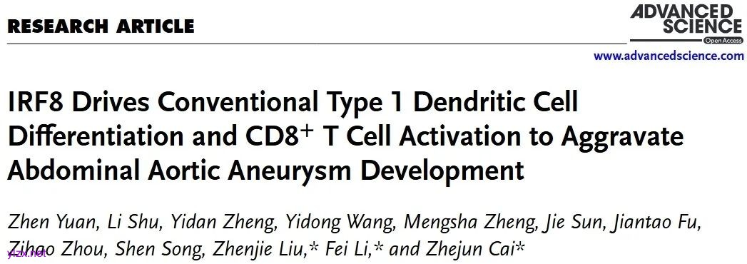Adv Sci 浙江大学医学院蔡哲钧、刘震杰教授联合武汉协和医院李飞教授揭示IRF8在腹主动脉瘤发生发展中的作用及机制