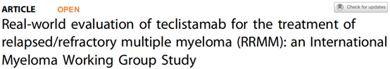 Blood Cancer J | 真实世界中特立妥单抗治疗复发/难治性多发性骨髓瘤(RRMM)的有效性和安全性评估:国际骨髓瘤工作组研究