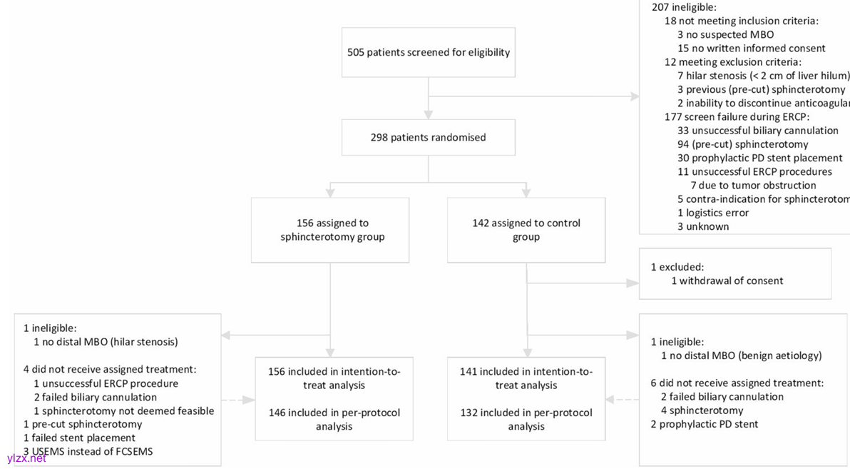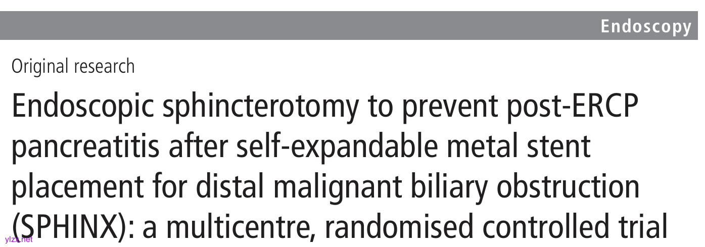 远端恶性胆道梗阻(MBO)由胆管癌、胰腺癌以及壶腹周围癌等引起,由于早期诊断困难,只有约20%的患者在确诊时可以考虑手术治疗,绝大多数出现黄疸等症状时已经失去手术机会,其可继发胆道感染、肝功能衰竭及全身衰竭等症状,有效的胆道引流对改善患者症状和预后十分重要。经内镜逆行胰胆管造影术(ERCP)结合全覆膜自膨式金属支架(FCSEMS)置入是治疗疑似MBO患者的首选方法。然而,FCSEMS的放置与较高的术后胰腺炎(PEP)风险相关。为了降低这一风险,内镜下括约肌切开术(endoscopic sphincterotomy, EST)被认为可能是一种有效的预防措施。然而,EST是否确实在这一人群中具有保护作用尚无明确证据。本文所报道的研究由荷兰胰腺癌研究组主导完成,于2025年1月发表于《Gut》期刊(IF:23.1)。该研究团队设计了一项多中心随机对照试验(SPHINX),比较了在FCSEMS置入前进行EST与不进行EST的效果差异,以期找到一种能够有效降低PEP风险的干预策略。