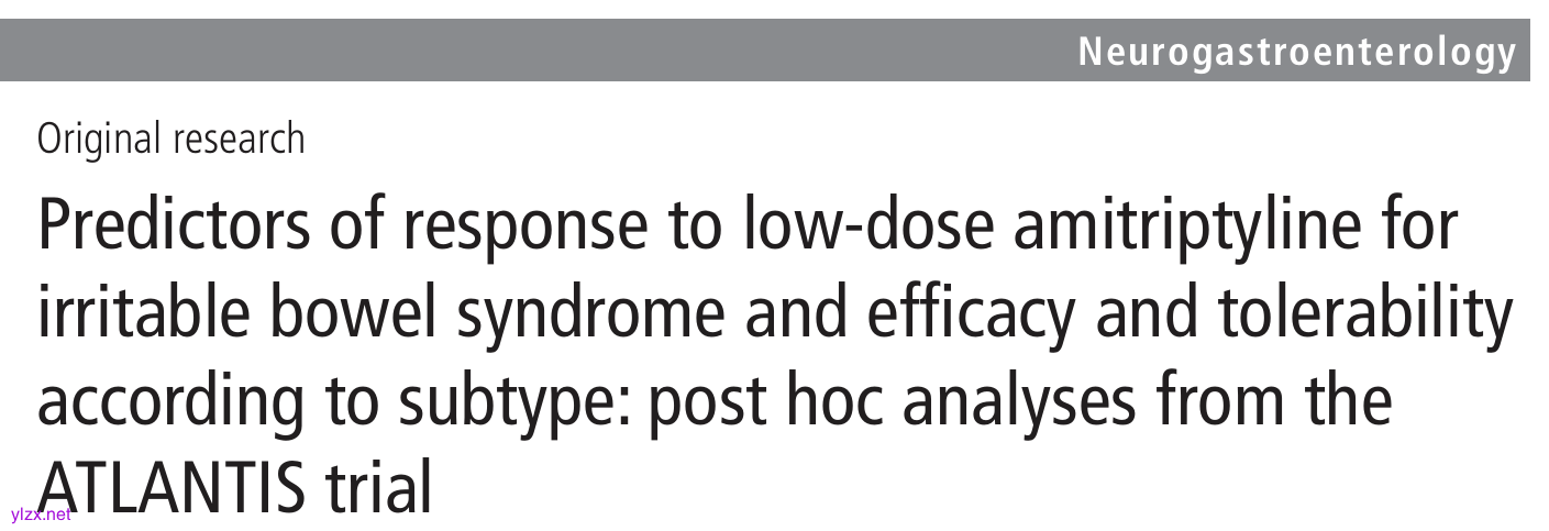 肠易激综合征(Irritable Bowel Syndrome, IBS)是一种常见的功能性胃肠疾病,其特征是腹痛、腹胀以及排便习惯的改变。尽管IBS不会直接危及生命,但严重影响患者的生活质量,并带来了显著的社会经济负担。低剂量阿米替林(amitriptyline),一种三环类抗抑郁药(TCA),已被证实对IBS症状有改善作用。然而,既往研究并未深入探讨不同亚型IBS患者对阿米替林的反应是否存在差异,也未明确预测患者治疗反应的潜在因素。这项研究由来自英国利兹大学医学院的Alexander C. Ford教授及其团队于2025年4月发表于《Gut》期刊(IF:23.1)。该研究团队对ATLANTIS试验(一项已证明低剂量阿米替林在IBS治疗中的优越性的试验)进行了事后分析,探索了阿米替林疗效的预测因素,并评估其在不同IBS亚型中的表现。