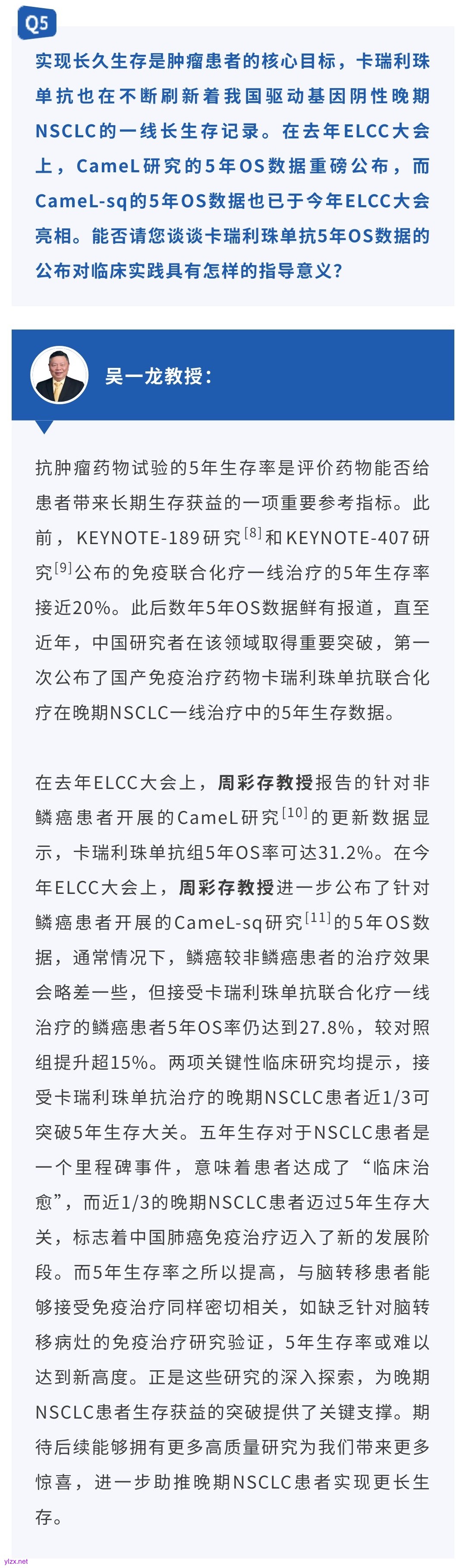 10. Caicun Zhou, et al. First-line camrelizumab (Camre) plus carboplatin (Carbo) and pemetrexed (Pem) for advanced non-squamous NSCLC: 5-yr outcomes of CameL phase III study. 2024 ELCC 61P.