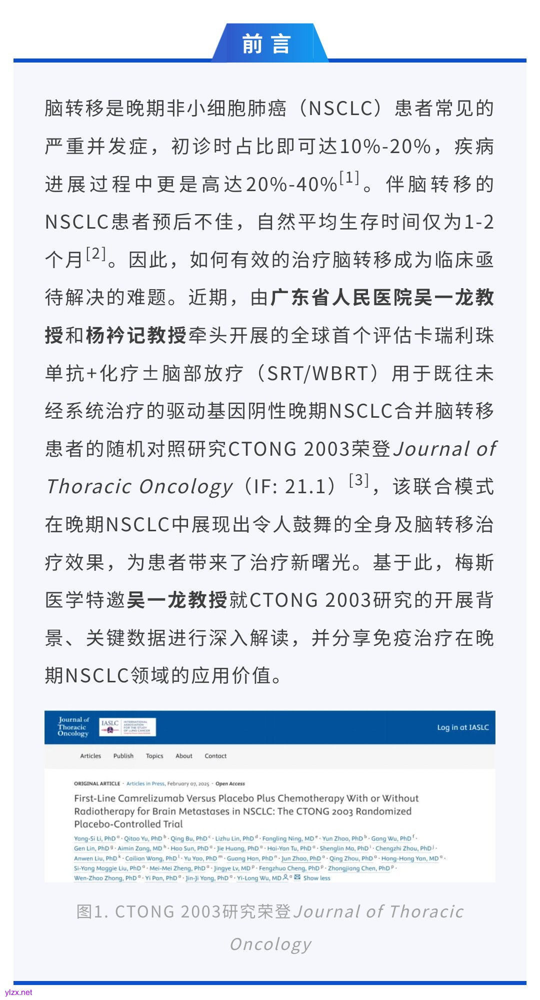 吴一龙教授:CTONG 2003研究荣登 JTO,卡瑞利珠单抗联合放化疗方案助力晚期NSCLC患者颅内及全身PFS双获益!