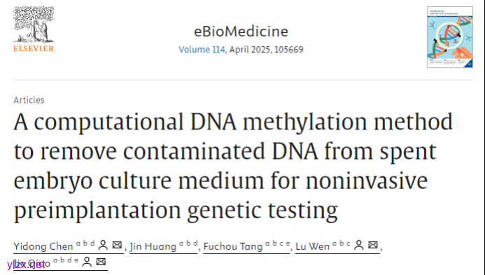 eBioMedicine:北大乔杰/文路/陈依东团队合作开发无创胚胎着床前遗传学检测计算新方法:精准去除胚胎培养液中污染DNA