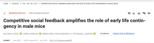 雄性小鼠在早期受到资源竞争的压力,迅速形成了独特的成年行为特征,并随着时间的推移,这些特征愈加稳固。