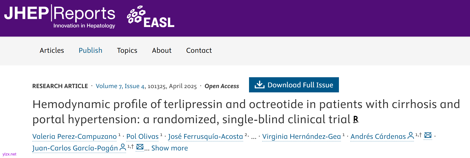 JHEP Rep:特利加压素和奥曲肽对肝硬化和门脉高压症患者的血流动力学影响