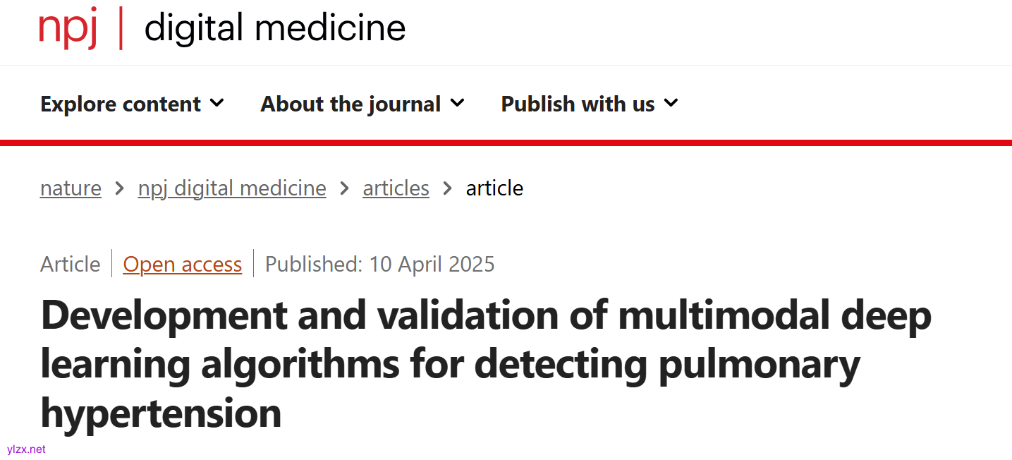 NPJ Digit Med :我国学者揭示多模态深度学习模型在肺动脉高压筛查中的应用