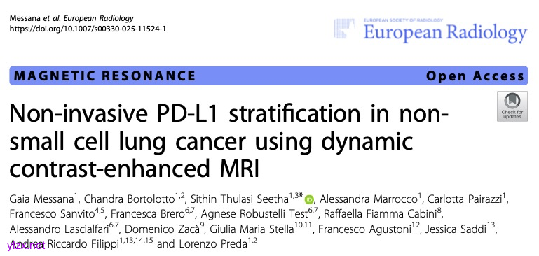 Gaia Messana,Chandra Bortolotto,Sithin Thulasi Seetha,et al.Non-invasive PD-L1 stratification in non-small cell lung cancer using dynamic contrast-enhanced MRI.DOI:10.1007/s00330-025-11524-1