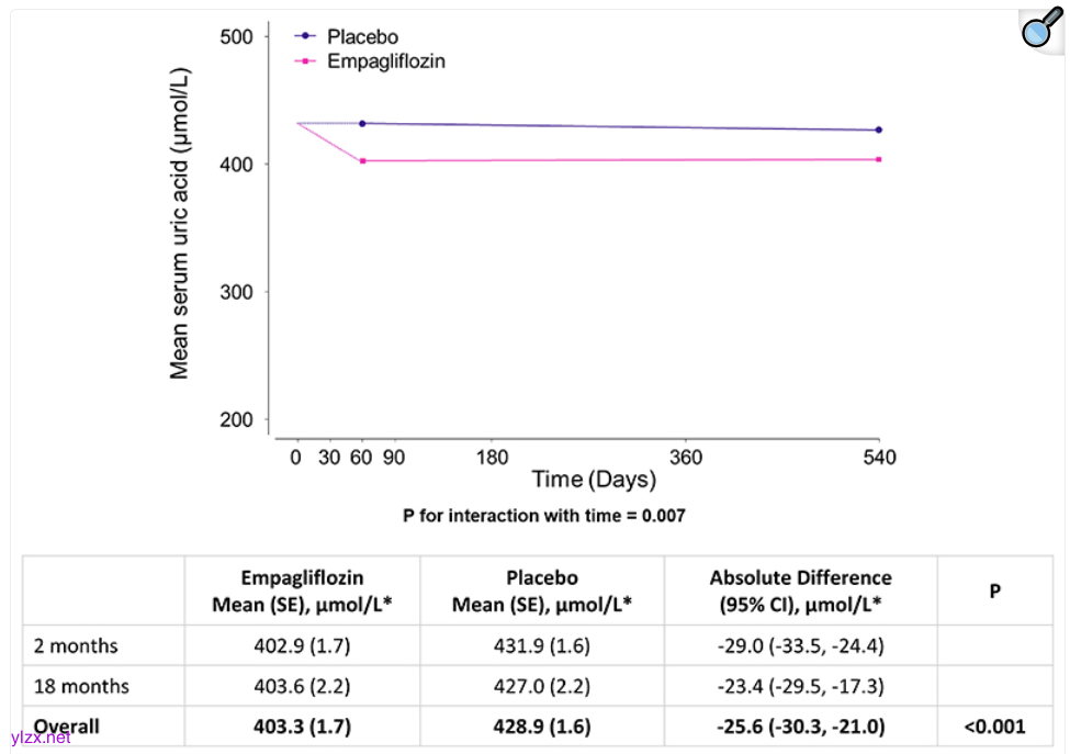 恩格列净对比安慰剂对血清尿酸的总体影响