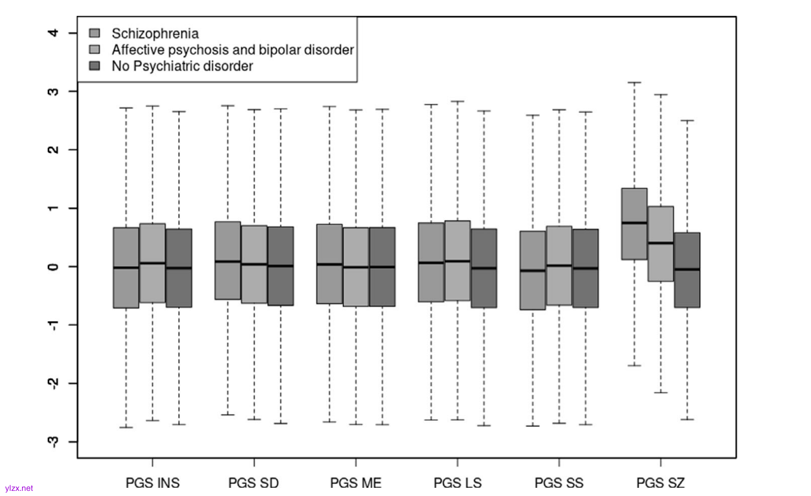 图2:不同诊断组中多基因评分的分布比较