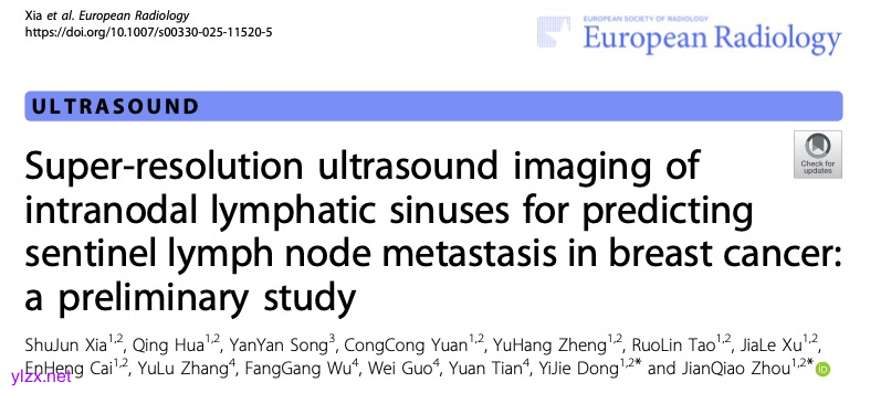 ShuJun Xia,Qing Hua,YanYan Song,et al.Super-resolution ultrasound imaging of intranodal lymphatic sinuses for predicting sentinel lymph node metastasis in breast cancer: a preliminary study.DOI:10.1007/s00330-025-11520-5