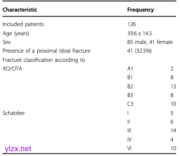 研究回顾性纳入了来自两个中心的 126 例急性膝关节损伤患者(男性 85 例;年龄 39.6±14.5 岁)。患者均接受了 3T 的膝关节 MRI 检查,其中包括 FRACTURE-MRI 序列。41 例(占比 32.5%)胫骨骨折患者额外进行了 CT 检查,将其作为骨折分类的参考标准。两名放射科医生独立评估 FRACTURE-MRI 图像上是否存在骨折,并根据 AO/OTA(国际内固定研究学会 / 骨科创伤协会)、沙茨克(Schatzker)分类法以及 10 分段分类法对骨折进行分类。使用交叉表评估 FRACTURE-MRI 的诊断性能。使用克里彭多夫 α 系数(Krippendorff's alpha)评估阅片者之间的一致性。图像质量采用五分制评分(5 分 = 优秀;1 分 = 骨折线和骨折移位的清晰度不足),并使用估计边际均值进行评估。