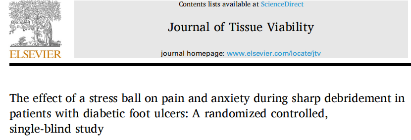 Fatma Aslan, Betul Tosun, et al. The effect of a stress ball on pain and anxiety during sharp debridement in patients with diabetic foot ulcers: A randomized controlled,single-blind study, Journal of Tissue Viability, https://doi.org/10.1016/j.jtv.2025.100861.