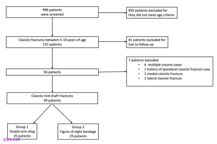 学龄儿童锁骨中段骨折两种非手术治疗方法的影像学结局:“8”字绷带法与手臂吊带法之间无差异