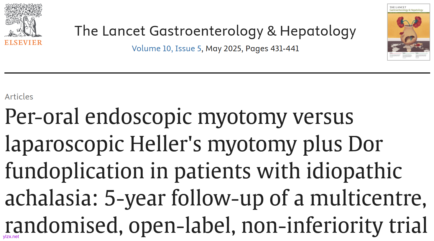 贲门失弛缓症(achalasia)是一种罕见的食管运动障碍性疾病,其特征是食管下括约肌(lower esophageal sphincter, LES)无法正常松弛,同时伴有食管体部蠕动功能丧失,导致吞咽困难、食物滞留和反流等症状。在治疗方面,传统的腹腔镜Heller肌切开术(laparoscopic Heller’s myotomy, LHM)联合Dor胃底折叠术长期以来被视为金标准。然而,近年来,经口内镜下肌切开术(per-oral endoscopic myotomy, POEM)作为一种微创手术方法迅速兴起,并以其较低的侵入性和良好的短期效果引起了广泛关注。这项研究由欧洲多个国家的研究中心合作完成。该研究于2025年3月发表于《The Lancet Gastroenterology & Hepatology》期刊。这项研究比较了POEM与LHM联合Dor胃底折叠术在治疗特发性贲门失弛缓症患者中的长期疗效和安全性。