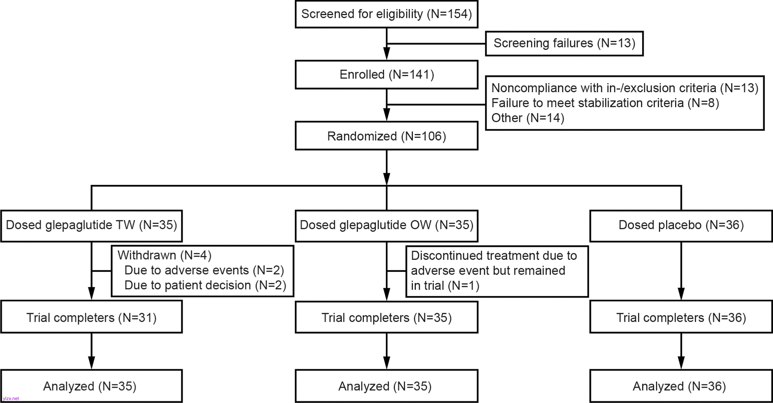 这项研究是一项国际多中心、随机、双盲、安慰剂对照的三期临床试验,共纳入了106名因短肠综合征导致肠道功能衰竭并需要每周至少3天PS支持的患者。所有患者被按照1:1:1的比例随机分配至三组:Glepaglutide 10 mg每周两次治疗组、Glepaglutide 10 mg每周一次治疗组和安慰剂对照组。主要终点是基线到第24周时PS体积的变化情况;如果患者48小时平衡期的平均尿量较基线增加超过10%,则认为PS需求可以等效减少。此外,关键次要终点包括实现临床反应的患者比例(即PS体积从基线减少≥20%)以及PS使用天数减少≥1天/周的患者比例。研究还评估了患者报告的结果(Patient Global Impression of Change, PGIC),并对药物的安全性和耐受性进行了分析。