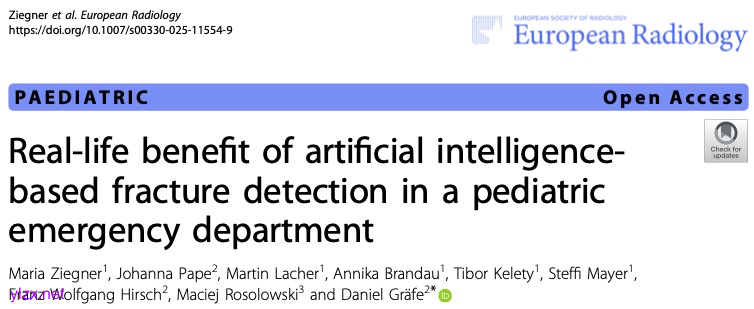 Maria Ziegner,Johanna Pape,Martin Lacher,et al.Real-life benefit of artificial intelligence-based fracture detection in a pediatric emergency department.DOI:10.1007/s00330-025-11554-9