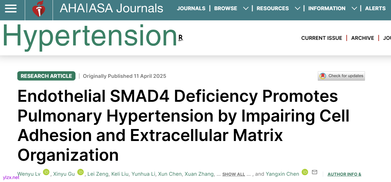 Lv W, Gu X, Zeng L, Liu K, Li Y, Chen X, Zhang X, Zhou X, He J, Dai Y, Wang J, Zhang F, Chen Y. Endothelial SMAD4 Deficiency Promotes Pulmonary Hypertension by Impairing Cell Adhesion and Extracellular Matrix Organization. Hypertension. 2025 Apr 11. doi: 10.1161/HYPERTENSIONAHA.124.22782. Epub ahead of print. PMID: 40211949.