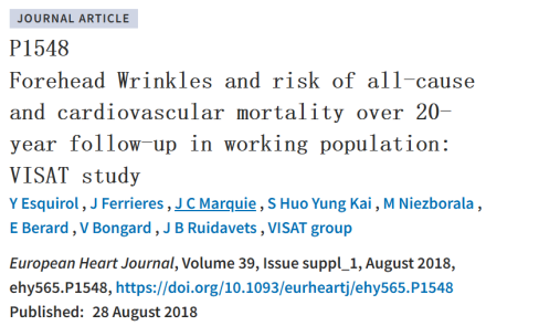 2018年发表在《欧洲心脏期刊》上的一项法国图卢兹大学研究,揭示了额头抬头纹与心血管疾病(CVD)死亡风险之间的惊人联系。