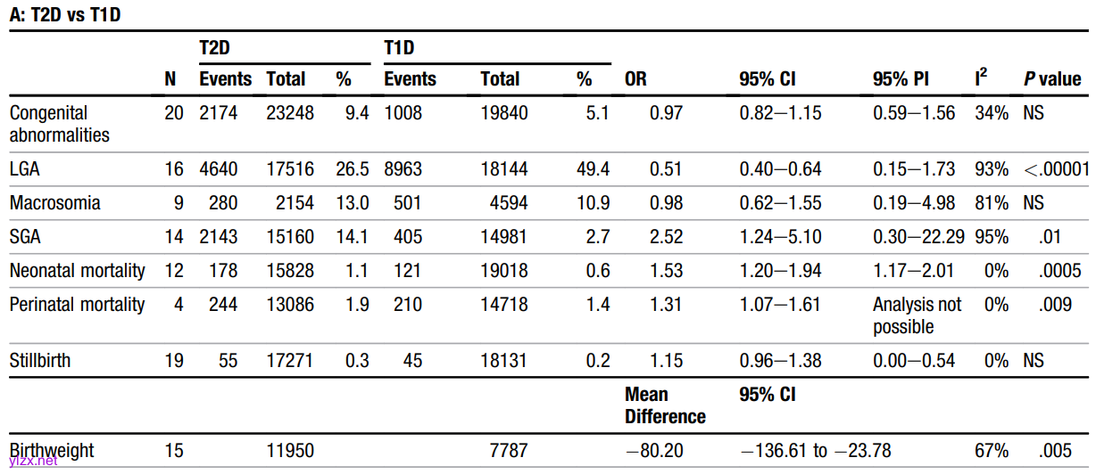 · 新生儿体重:T2D新生儿平均体重比T1D轻80.2克(P=0.005)。