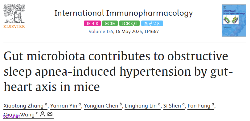 Int Immunopharmacol:肠道菌群通过“肠-心轴”加剧阻塞性睡眠呼吸暂停相关高血压