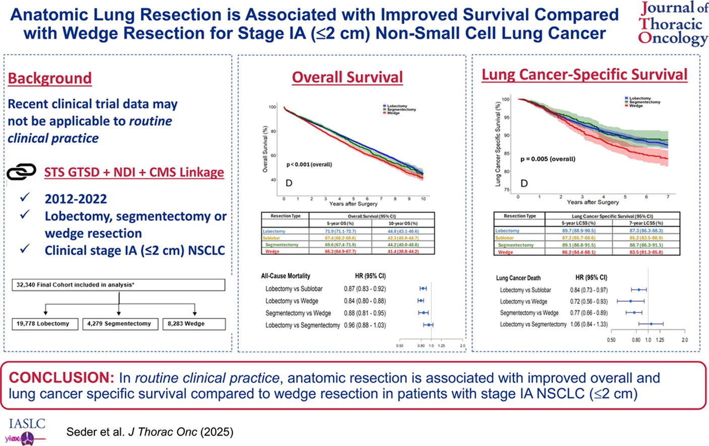 Seder CW, Chang SC, Towe CW, Puri V, Blasberg JD, Bonnell L, Fernandez FG, Habib RH, Kozower BD. Anatomic Lung Resection is Associated with Improved Survival Compared with Wedge Resection for Stage IA (2 cm) Non-Small Cell Lung Cancer.J Thorac Oncol. 2025 Mar 23:S1556-0864(25)00641-0. doi: 10.1016/j.jtho.2025.03.042