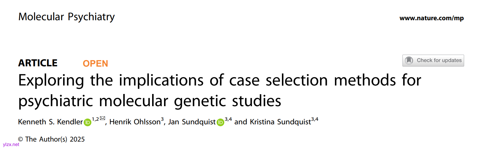 Mol Psychiatry: 580 万瑞典数据揭秘,病例选择原则对精神疾病遗传风险模式的影响