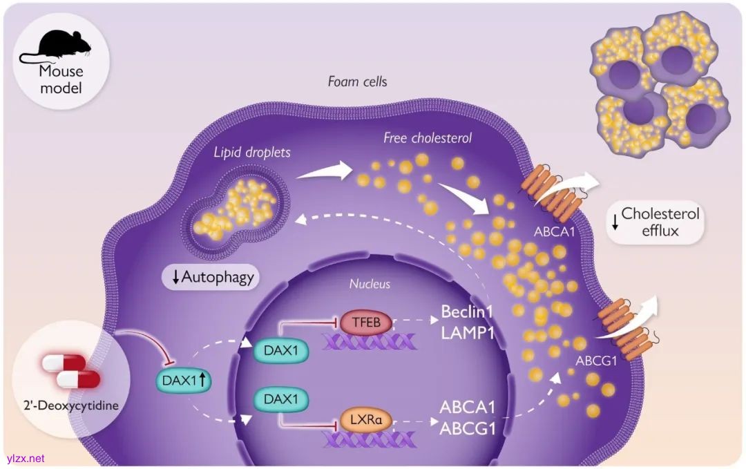 最后,研究者发现小分子药物2'-deoxycytidine可通过抑制Dax1表达,改善ApoE-/-小鼠动脉粥样硬化斑块形成,具有较好的转化潜力。