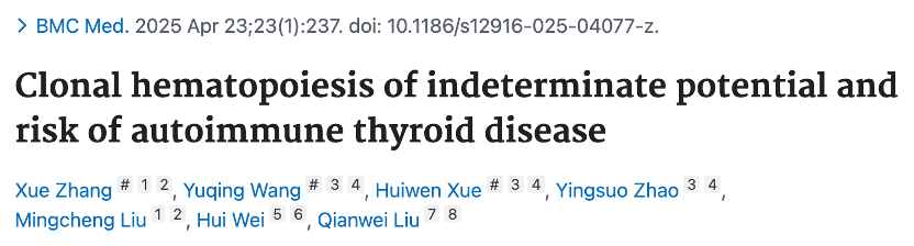 Zhang, X., Wang, Y., Xue, H. et al. Clonal hematopoiesis of indeterminate potential and risk of autoimmune thyroid disease. BMC Med 23, 237 (2025). https://doi.org/10.1186/s12916-025-04077-z